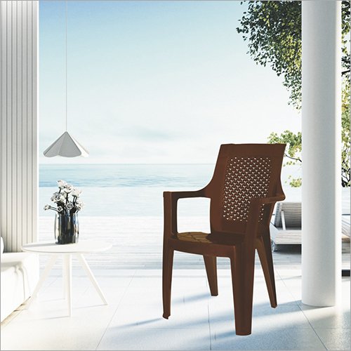 Sturdy arm chair with a contoured back for comfort. Weather-resistant, suitable for both indoor and outdoor use.
